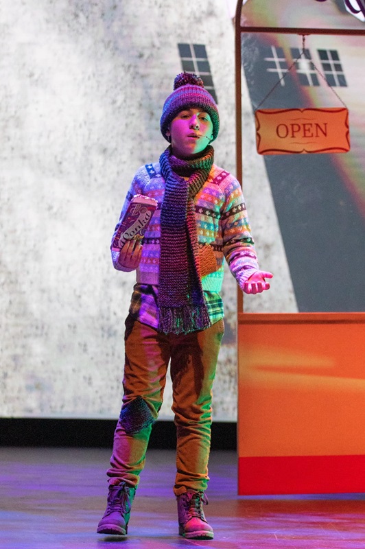 Young Charlie (Theo Traat at this performance) seems rarely to leave the stage. His eternal hope and belief in his dream, and his kindness shine through and create a heartwarming performance. Robbie Love as Wonka is a many faceted character, cunning and a touch sinister but also full of wonder and childlike enthusiasm, no more so than during “Pure Imagination” beautifully song by Wonka and the families. Grandpa Joe (Nick Owenford) shone from his bed and continued to do so in the second act. The other Golden Ticket winners (Augustus Gloop – Chris Fowler, Veruca Salt – Ellen Tozer, Volet Beauregard -Rachel Richards and Mike Teavee – Scott McHurley) were all wonderfully brought to life. Be it by concealing sausages, dancing like a prima ballerina and screaming across the stage, chewing gum and taking selfies or being screen obsessed, they were all characters that you love to dislike. One of the most moving songs of the night was beautifully performed by Annabel Pilcher, Mrs Bucket. The song pulled at your heartstrings while the notes rang like a bell through the theatre.