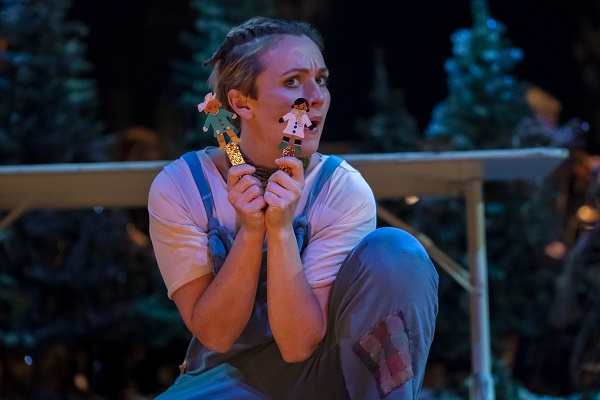 ‘Hansel and Gretel’ had no permanent set design opting for removable set pieces and props which differentiated the different locations throughout the show. Such as branches entangled in fairy lights to display the forest or the sweet-filled trolley later turning into a fireplace for the witch’s house. There was nothing remarkable about the props, however I was subtly surprised in regard to the costumes. For example, the Dew Fairy was sporting a lilac colour pallete topped with pearls, sparkly glasses and wings complimenting her mythical nature contrasting the ensemble who were presented in black cloaks covering their bodies and faces displaying the mystery and secrets hidden within the forest we have yet to find out.