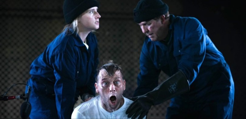 The adaptation adeptly condenses the first half of Orwell’s novel, focusing on world-building and intrigue through an induction led by high-ranking Party officer O’Brien (Dominic Carter). A Big Brother rally, complete with patriotic singing, anti-sex league flyering, and party agents probing, welcomes the audience into the dystopian world where every word and movement are monitored under the ever-present eye of Big Brother.