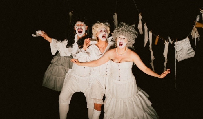 Bang Average Theatre’s playful restoration comedy follows a troupe of actors, Mary Moralless, Isabinda Mclovealot and Neil Hasbeen and their drama both on and off the stage. From shifting dynamics between the three to bickering, grief, unrequited love and disease, there is mayhem throughout. We are transported to the grimy 17th century with crude snippets of the past, featuring an animated skincare routine and multiple dance sequences.