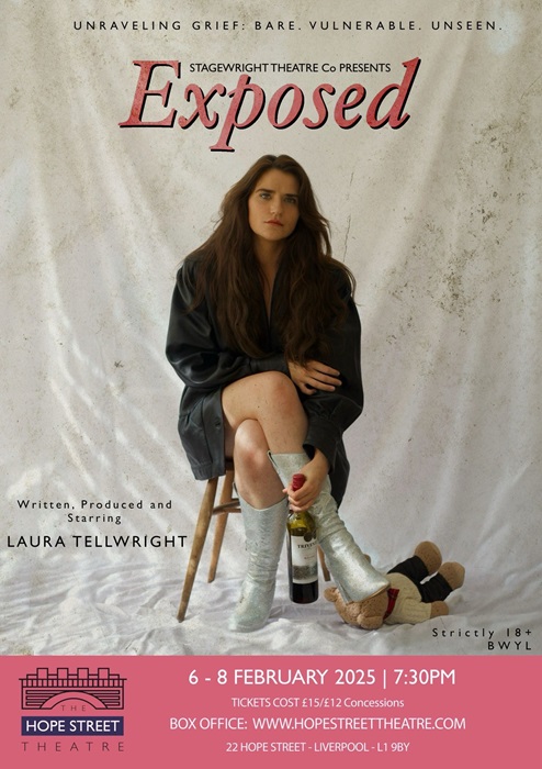 New Year is a time of joy, but it can also be a difficult time for those who have experienced or are experiencing loss. Stagewright Theatre Company’s upcoming production of Exposed, Laura Tellwright’s debut one-woman show directed by Faye Caddick, at The Hope Street Theatre in Liverpool, explores the often-unspoken experiences that surround loss and grief and the deeply personal vulnerability that inevitably follows for so many people.