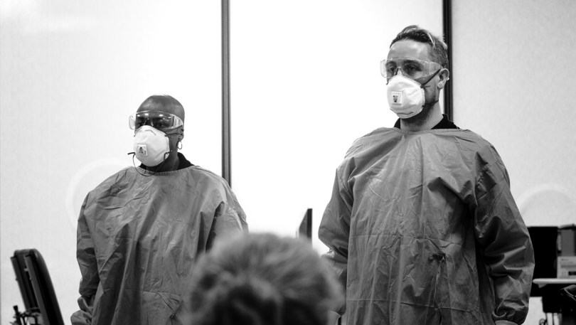 With minimal lighting and set, this piece is truly the perfect Fringe show. We’re introduced to the piece by Adam, who explains what the show is about, and while the two actors throw themselves in and out of different characters, the house lights never go down – we, the audience, are part of the show. What follows is a high-octane sixty-minute performance that is hugely enjoyable and engrossing from start to finish. While the focus is on the stories of those working in healthcare, the show also shines a light on the ethics of verbatim theatre, as well as touching on the moral quandary of a life in art vs. a career in medicine. Throughout the story, music and dance play such a key role in keeping people sane that they prove you can’t have one without the other. Despite the often harrowing, often traumatizing stories that are being shared, there is a natural backbone of humour as an undercurrent throughout. As one character tells us as they dress in DIY PPE made of bin-bags, “it was funny, but it wasn’t”. There is a gentle humour and constant warmth that really allows the empathetic nature of the piece to shine through.
