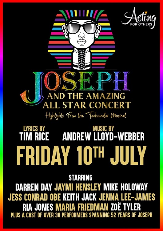 Joseph and the Amazing All Star Concert is broadcast this Friday 10th July at 6.30 pm on their Facebook page https://www.facebook.com/JosephConcert
