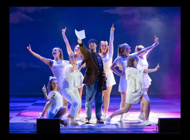 Director Louise Denison was kept busy choreographing all the big numbers but kept her direction of performers with wildly different levels of experience brisk, supported by a nimble orchestra under Jim Lund’s baton. Special mention to the charming troupe of Delta Nu sorority pledges who were great fun, despite one or two minor choreography errors that would no doubt be fixed on a longer run, or if this production was going on tour.