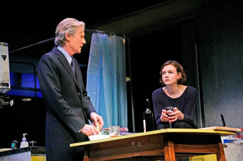 Both Nighy and Mulligan give stellar performances in the central roles; Nighy is sarcastic, scathing and bitterly funny as Tom, casually pulling apart the life choices of Kyra, but displaying an underlying vulnerability and neediness that eventually reveals the motive for his decision to reconnect with his former lover. His rants are spectacularly executed across the gamut of the modern world, ranging from management consultancy to gardening (If I could abolish it, I would), accompanied by his trademark angular physicality throughout. His explanation of grief following the recent loss of his wife Alice is beautifully delineated, he draws out the guilt and shame the surviving partner feels and despite her never being seen, Alice is a presence throughout the entire performance.