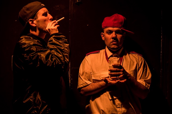 Murray’s Spaxx is a half Indian geezer from Mitcham who is whiling away the hours with Cree’s more considered white, working class Marx on a zero-hour contract night shift in the office of a rundown factory.  Between chats about life living from one crap payday to the next, their dreams and. insecurities they throw in some top-class beatboxing and rapping.