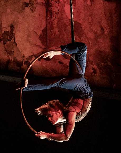 There was multi, and very fast hula-hooping, the like of which you have to see to believe. One young woman twisted and twirled 20ft in the air, with only the thinnest silky material holding her weight. A swing even higher upheld two performers, one of whom kept dramatically falling into the strong arms of her fellow performers, who promptly and regularly threw her back up into the waiting arms and legs of her co-swinger.