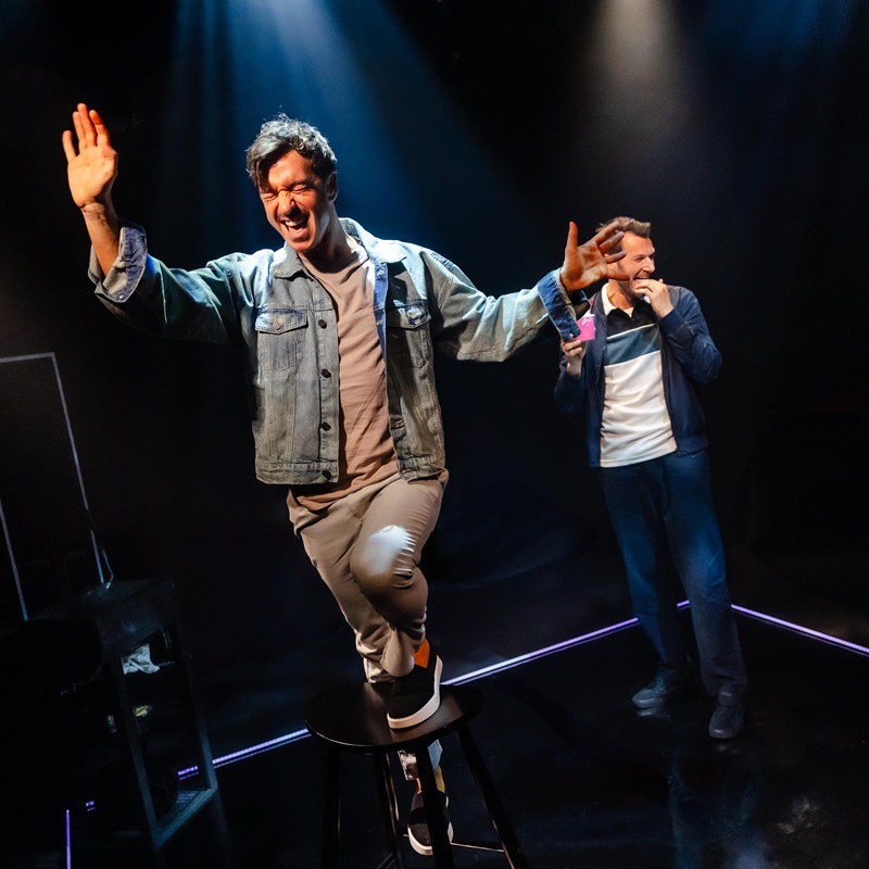 Something else that really struck me was the impact of the set design (Andrew Exeter) – despite operating in a space no bigger than about 3 metres squared, the stage never feels overcrowded. Under Alan Souza’s direction, each centimetre feels like it has been considered and optimised and with the audience surrounding the stage everyone enjoys a decent and unique view – perhaps in the same way we are being invited to form a view of what is unfolding. Jack Weir’s lighting compliments this so nicely, again doing a lot with a little – the lighting elevates the piece and almost becomes a second layer of staging, which I really enjoyed.