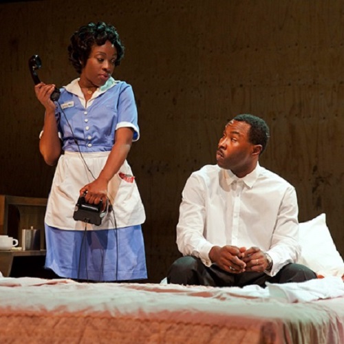Obisesan plays the role of King as a man who is worn down by his commitments, the attempts on his life, the arrests. He has a scratchy voice from making speeches and probably too many cigarettes. We see a man who is an easy leader with ambitious ideas and has had the energy to whip up the people to follow him; but he is weary. On this; the day before he died, he made a speech entitled ‘I’ve been to the Mountaintop’ in Memphis, it was a stormy night and the lightening made him edgy. Even though he was a powerful man, Hall’s script and Obisesan’s performance, bring out a vulnerable side to a character who has fears and flaws, just as we all do. Adekoluejo shows a wild side to Camae which King appears to be attracted to, she is free with no pressures, as far as he can see.