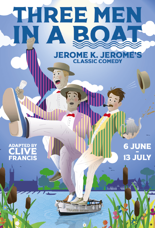 Three Men in a Boat was performed in a delightfully charming theatre nestled by the waters of the Thames, just outside London in Sonning. The theatre itself featured a beautiful mill inside the building, adding to the unique and picturesque atmosphere of the venue.